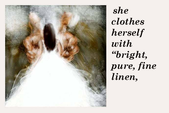 The phrases in Rev. 19:7b–8, “his bride prepared herself” and “it was given to her that she should clothe herself with fine linen, bright [and] pure,” continue the meaning of the marriage metaphor in 19:7a. As in the initial clause of 19:7 and in Isaiah, the primary point is not that the saints’ effort contributes to the acquisition of righteousness.